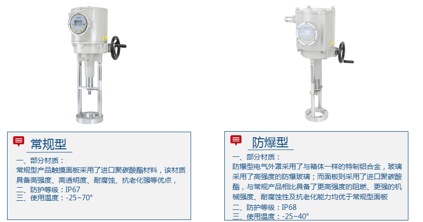 2SB6系列是我公司研發的新-代智能型電動執行器,是采用直流無刷電機的精小型電動執行器。該系列采用直流無刷電機驅動,非接觸式霍爾傳感器位置檢測,自適應控制等技術,有高效節能,高精度,易操作,小型化等優點。2SB6系列為直行程電動執行器,具有柔性開啟和關閉功能,其主要應用于對各類需要改變流體流量的電動閥門(如調節閥,管夾閥 ,套筒閥等)。